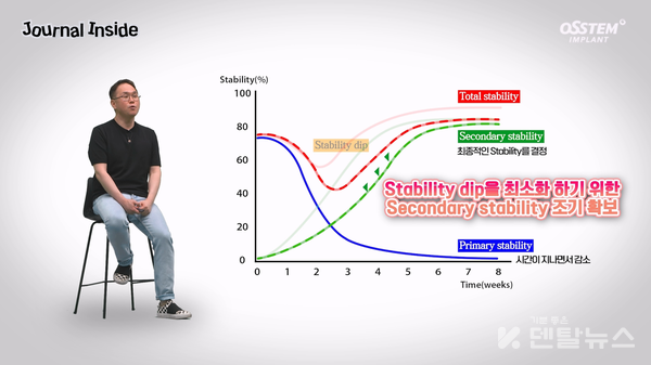 7월 17일 업로드된 콘텐츠에서는 김용진(예스미르치과) 원장이 연자로 나와 'Do the New Hydrophilic Surface Have Any Influence on Early Success Rate and Implant Stability during Osseointegration Period? Four-Month Preliminary Results from a Split-Mouth, Randomized Controlled Trial' 논문을 소개했다. 해당 논문은 오스템임플란트 BA(Hiossen NH) 표면 임플란트의 임상적 유효성을 다룬 내용으로 실험은 Split-Mouth Randomized Controlled Trial 방식으로 친수성(NH) 표면과 기존 SA 표면 임플란트의 안정성(ISQ Value) 변화를 식립 직후부터 6주까지 주 단위로 비교했다.