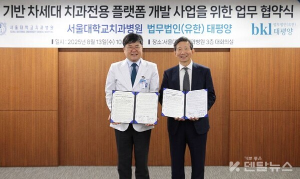 [덴탈뉴스=홍혜진 기자] ] 서울대치과병원(원장 이용무)과 법무법인(유한) 태평양(대표변호사 이준기)은 8월 13일 차세대 치과전용 플랫폼 개발사업을 위한 업무협약을 체결했다.