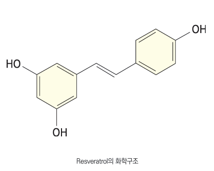 레스베라트롤에는 트랜스 레스베라트롤과 시스레스베라트롤의 두 가지 형태가 있다. 트랜스 레스베라트 롤만이 약효가 있는 것으로 추측되고 있다. 열과 자외선에 의해 트랜스 레스베라트롤이 시스레스베라트롤로 바뀐다. 레스베라트롤은 체내에서 재빨리 대사된다. 대사산물은 주로 황화 유도체와 글루크로나이드 유도체이다. 유도체들의 약리작용은 아직까지 알려져 있지 않다. 순수 레스베라트롤은 체내 에서 반감기가 8~14분 정도에 불과하다.