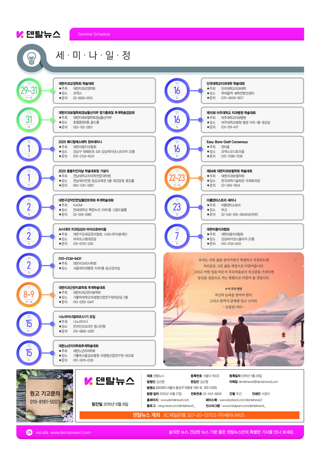 당신만 안 본 뉴스 [알파베러정재욱대표] 좋은 제품 검증된 제품만 모은 알파베러 유한 evertis 임플란트 성공 위한 워크샵 진행 “미용치과 안티에이징이 치과의 블루오션” 덴탈스튜디오, 블랙니들홀더 출시 서울대학교치과병원, 키르기스스탄 장애 어린이위한 사랑의 의료봉사 펼쳐 연송캠퍼스 개관10주년 기념식 및 SID 명예의 전당 제막식 네오바이오텍, 즉시로딩 임플란트 ALX-IT 11월 세미나 전국 진행
