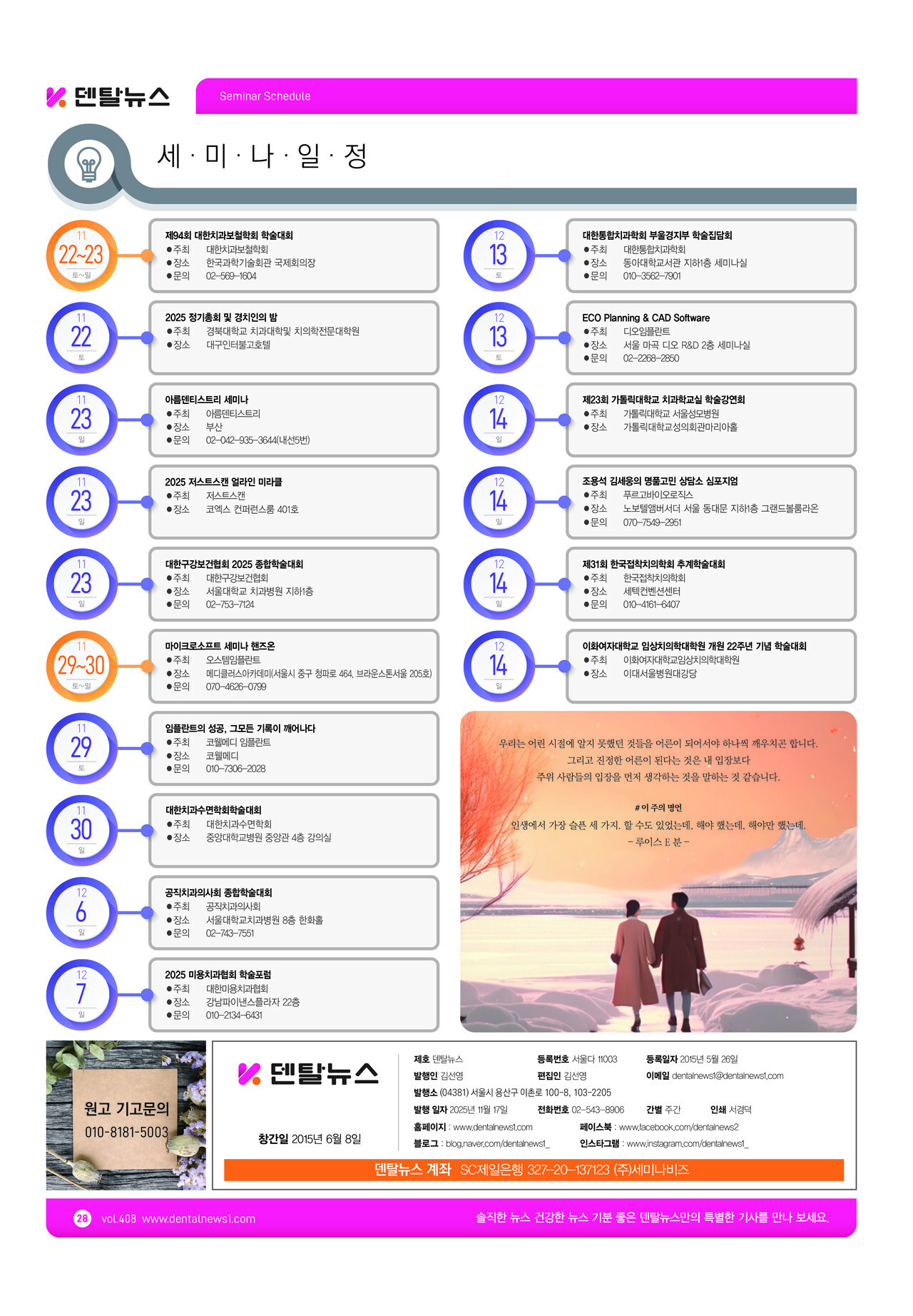 주요기사 중국 의료기기 1등급 인허가 취득 점빵치과 고민! 한자리서 해결 완성도높은 투명교정 솔루션 나노라이너 치과의사들의 만성고민 해결 신경치료가 혈당과 지방대사까지 개선 골이식 전략과 덴티움 제품 활용 노하우 공유