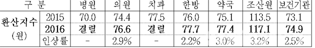한편, 지난 2일 재정운영위원회가 심의·의결한 2016년도 요양급여비용 계약 결과는 오늘(3일)에 개최되는 건강보험정책심의위원회(이하 건정심)에 보고되며, 건정심에서는 결렬된 병원과 치과의 환산지수를 국민건강보험법에 따라 6월 중 결정하고 이후 보건복지부장관이 그 결과인 2016년도 요양급여비용 명세를 고시하게 된다.