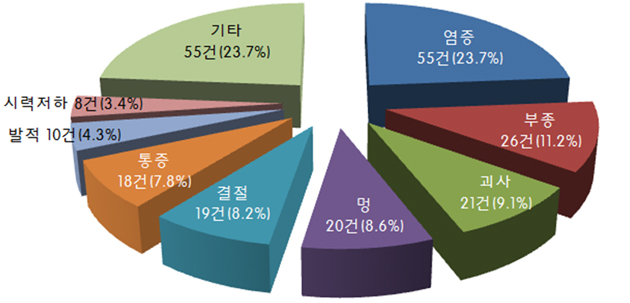 그러나 시장 규모의 성장과 함께 성형용 필러로 인한 부작용 사례도 급증하고 있는데, 연도별 부작용 신고 현황을 살펴보면, 2012년 57건에서 2013년 73건, 2014년 102건 등 매년 거의 50%씩 증가하고 있는 것으로 나타났다.