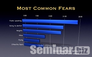 실제로 미국측 자료이기는 하지만 1987년 성인 1000명을 대상으로 한 설문조사에 따르면 ‘치과에 가는 것’을 ‘대중 앞에서 발표하는 것’ 다음으로 공포를 느낀다고 하였습니다(그림 01). ‘고소공포증’ ‘쥐를 보는 것’ ‘비행기 타는 것’ 등이 그 뒤 순위를 차지한다.