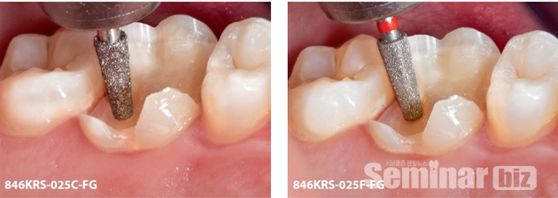 아울러 ‘InPrep Diamond Points’는 팁 중심부에 다이아몬드 코팅이 없는 비활성 면이 있고, 다이아몬드 코팅 위에 1/100mm 정도 높게 돼 있어 와동의 바닥면에서 야기될 수 있는 원치 않는 과잉 프렙을 방지해 준다.