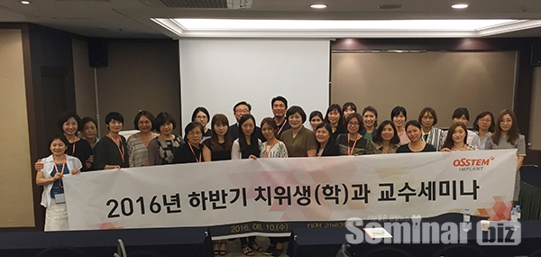 오스템임플란트(회장 최규옥)가 주최한 2016학년도 치위생(학)과 교수세미나가 지난 10일(수) 대전 리베라 호텔에서 성황리에 열렸다. 이번 세미나는 하반기 치과건강보험 수업 대비 교수능력 강화를 목적으로 계획됐다. 강의는 치과건강보험 전문가로 손꼽히는 오스템 및 대한치과교육개발원 치과건강보험 패컬티 강사진들이 연자로 나섰다.