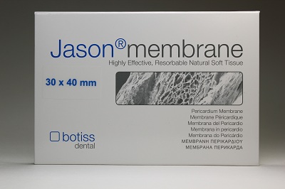 제이슨 멤브레인은 돼지 심막(Pericardium)에서 추출한 천연 콜라겐 재질로 최장 6개월까지 멤브레인 기능을 유지할 수 있는 강점이 있다.
