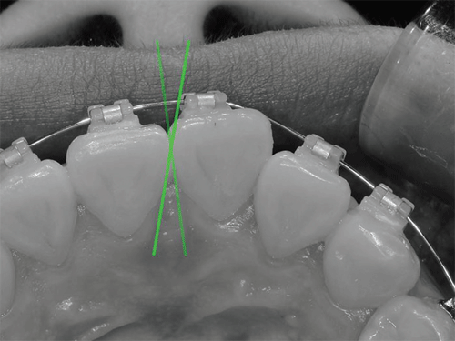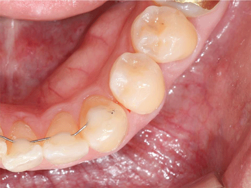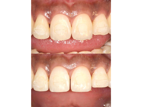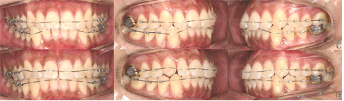 조) 우선 크라우딩이나 로테이션이 매우 쉽게 해결됩니다. (지난 호의 그림 30 참조) 그리고 와이어를 교체하는 과정에서 기존의 와이어와 접착제가 모두 제거되기 때문에 기구의 접근이 매우 자유롭습니다. 로테이션이나 크라우딩이 해결된 상태에서 기구의 접근도 제한되지 않기 때문에 쉽고 정확하게 IPR을 시행할 수 있습니다. (그림 55)