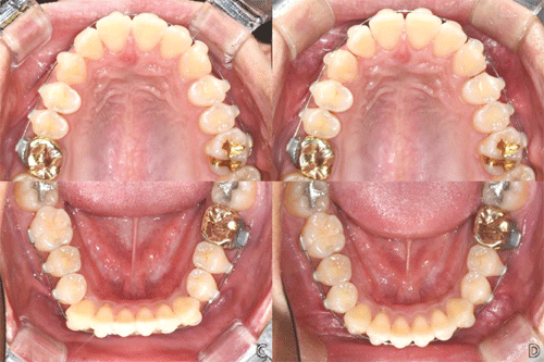 만약 다음 와이어로 교체가 가능할 정도로 크라우딩이 펴졌다면 와이어를 교체합니다. 그렇지 못하다면 아직 가장 펴지지 않은 치아 하나를 선정하여 re-bonding하게 됩니다. 다음 내원 시에도 같은 과정을 반복하여 배열을 완성합니다. 증례를 통해서 배열 과정을 살펴보도록 하겠습니다. (그림 47~50)