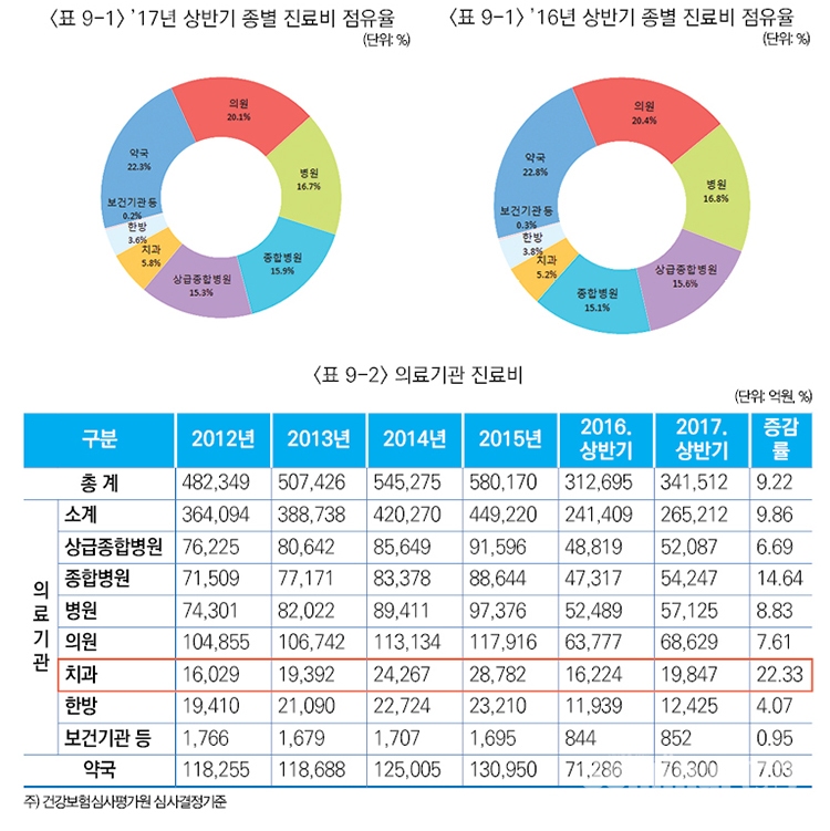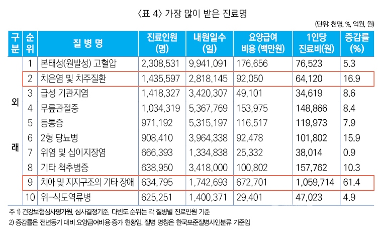 건강보험 진료비 33조 9,859억 원 9.2% 증가 ....‘치은염 및 치주질환자 ’ 12.7% 많아져