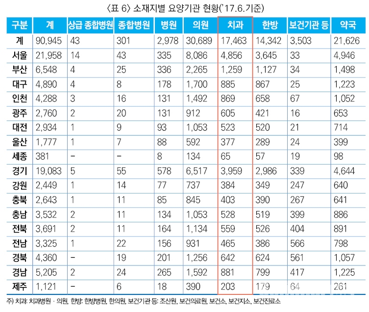 요양기관 현황을 보면, 올해 6월 요양기관 수 총 90,945개로 전년대비 1,815개 관이 증가했다. <표 6, 표7>
