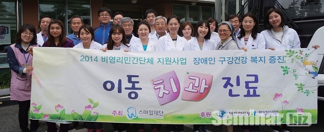 스마일재단(이사장:나성식)이 물리적 접근성의 문제로 치과진료가 어려운 장애인들을 직접 방문해 구강검진과 치료, 구강관리교육을 진행한다.