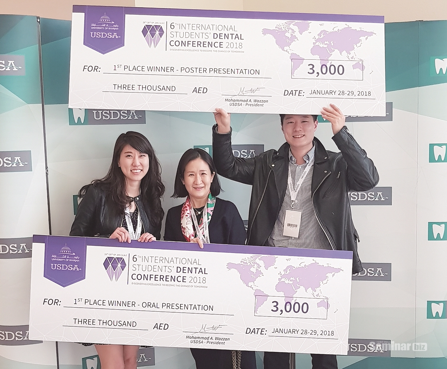 지난 1월 28-29일 양일 간 University of Sharjah, U.A.E.에서 개최된 The 6th International students' dental conference 2018에 경희대학교 치의학전문대학원(대학원장 박영국) 신서영(치전원 3학년) 학생은 ‘Changes in muscle activity and jaw movement after orthognathic surgery in patient with facial asymmetry’에 대해 발표해 Oral presentation competition 1위를 수상했다. <사진>