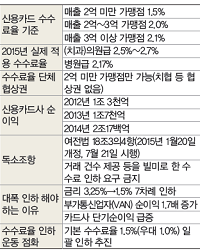 원가 75% 수가에 불경기·메르스, 카드 수수료까지 수수료율 작년 2.1~2.3% → 2.3~2.7% 인상, 작년 카드사 순이익 2조1백7십억 '3년새 9천억 깡충'