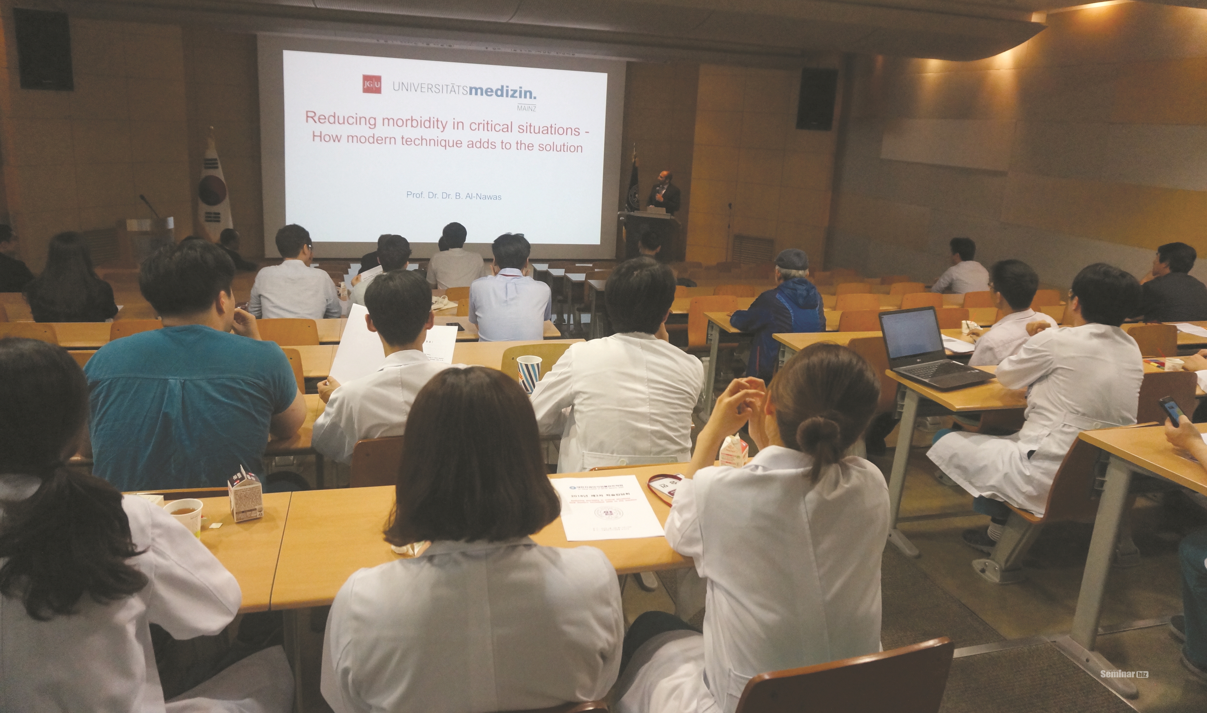 이 날 집담회에는 지난해 7월 협약을 맺은 독일임플란트학회(DGI)의 차기회장인 DR. Bilal AL Nawas 교수가 강의했다.