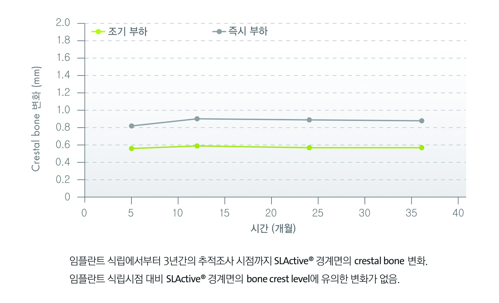 임플란트 식립 시점 대비 SLActive® 경계면의 bone crest level에 유의한 변화가 없는 것으로 드러났다.