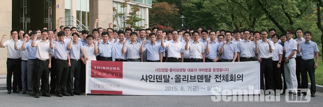 국내 최고의 치과재료 전국 유통망을 자랑하는 샤인덴탈과 신속하고 편리한 치과재료 유통의 변화를 선도하고 있는 올리브덴탈이 지난 7일~8일 경기도 용인 신흥양지연수원에서 ‘2015 대표자 연합 워크샵’을 진행했다.